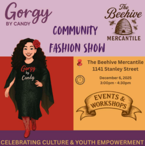 Candyce Scott of Gorgy by Candy has announced a Community Fashion Show. The event is to be December 6, 2025, from 3:00pm to 4:30pm at The Beehive Mercantile at 1141 Stanley Street. “Weโre hosting a Fashion Showcase with Gorgy by Candy. Join us for a family-friendly afternoon filled with style, community, and local artistry,” said […]