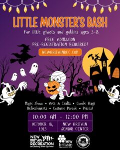 New Britain Recreation is hosting a “Little Monster’s Bash” for “little ghosts and goblins age 3-8.” “The event will feature a Magic Show by the Amazing Andy, Arts and Crafts, trick or treat candy and light refreshments,” the city Recreation department says. “Participants are encouraged to dress up for the party and take part in […]