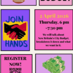 The CT People’s Survival Programs is planning a City budget discussion, saying, New Britain Residents! Join us for a community discussion on the City Budget. Share your thoughts on what should be prioritized and learn how to get more involved. The discussion is Thursday, April 2, 2026, from 6:00pm to 7:30pm in the New Britain […]