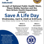 The Office of Mayor Bobby Sanchez (D) says that, As part of National Public Health Week, the City of New Britain is hosting โSave A Life Dayโ to provide free, hands-on training in administering naloxone, a life-saving medication that can reverse opioid overdoses. New Britain EMS will lead the sessions, teaching participants how to identify […]