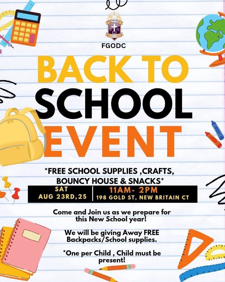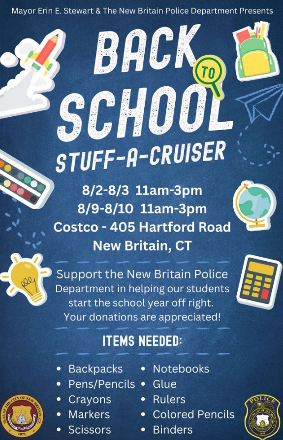 Editor’s note: As a public service, the New Britain Progressive is passing on information that was distributed publicly, but does not necessarilly have updates on these events. Those interested are encouraged to contact event organizers to determine if there have been any changes. If there are back-to-school events that are omitted, here, feel free to send them to [email protected].
