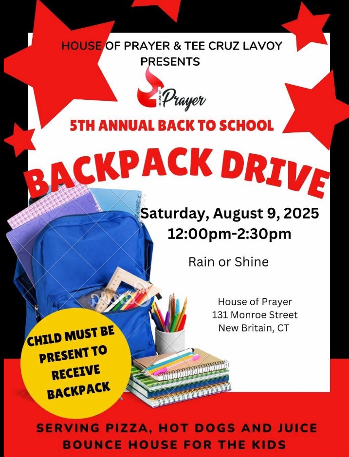 House of Prayer and Tee Cruz Lavoy 5th Annual Back to School Backback Drive