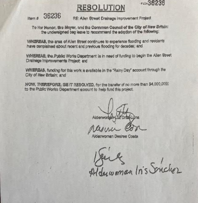 We are forced by Stewart-Beloin-Saavedra to live in “third world” flooding and sanitary back-up conditions while they blame the State for not providing the shortfall financing. Governor Lamont and State Representative Bobby Sanchez were instrumental in providing $2M in State Bonding to the City for the Allen St. Project.