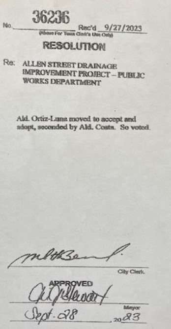 11) The cause and effect of the neglected and mismanaged Allen St. Problem has been clearly identified. In 2023, Weston-Sampson Engineers declared: “The Allen St. Project must be a priority because the infrastructure is at crisis levels.” The Allen St. Plan is Shovel Ready; Fully Fund and Construct the Allen St. Project now. It appears the Allen St. Project is stalled in political mischief created by Stewart-Beloin-Saavedra!