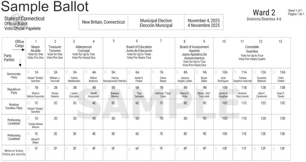 In an election year that could be seen as a bellwether on support or opposition to President Donald Trump (R), voters are choosing in city elections between the candidates on the slate of Trump’s Republican Party, lead by mayoral candidate Sharon Beloin-Saavedra, or the Democratic candidates on the slate of Bobby Sanchez, who is the Democratic candidate for mayor of New Britain.