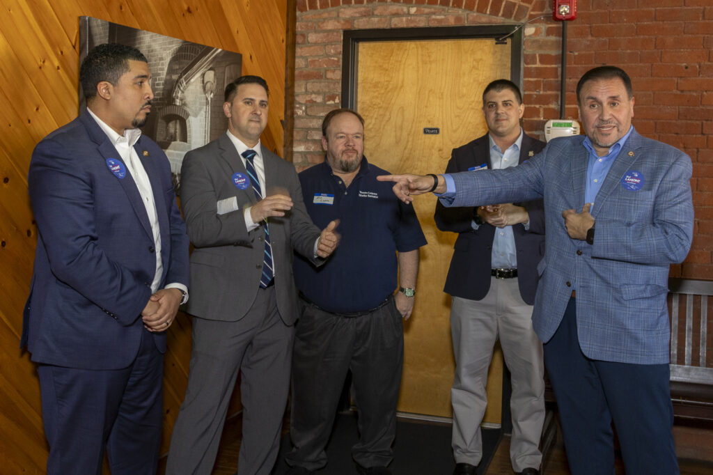 Mayor Bobby Sanchez (D) and New Britain State legislators, Rep Manny Sanchez (D-24), Rep Dave DeFronzo (D-26) and Sen Rick Lopes (D-6). Photo by Dr Frank Gerratana.