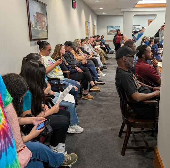 The Council Chamber room was so full that it was standing room-only – with some young people sitting on the floor.